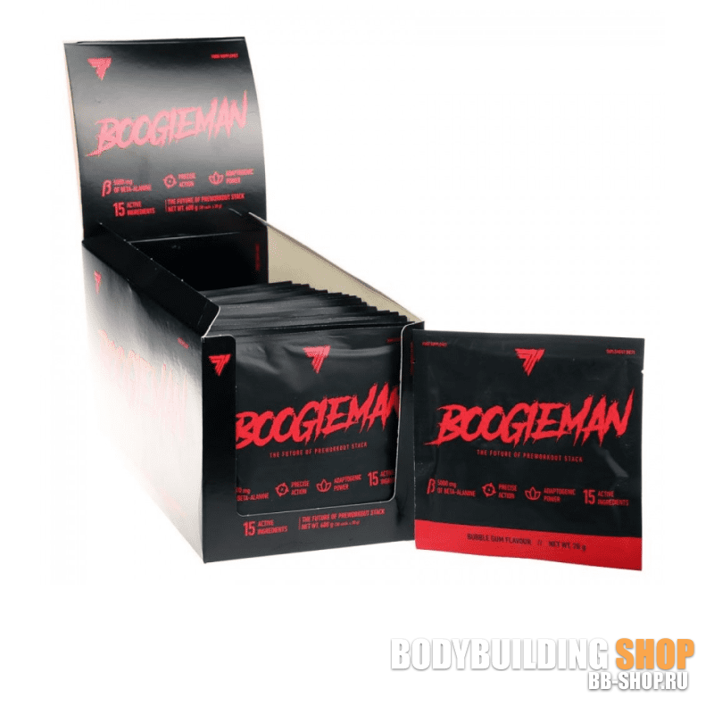 Вы можете купить Boogieman (20г) в магазинах BODYBUILDING SHOP города Стерлитамак по низкой цене. Trec Nutrition \ Предтренировочный комплекс Boogieman (20г): описание, фото, состав, отзывы покупателей, инструкция по применению.